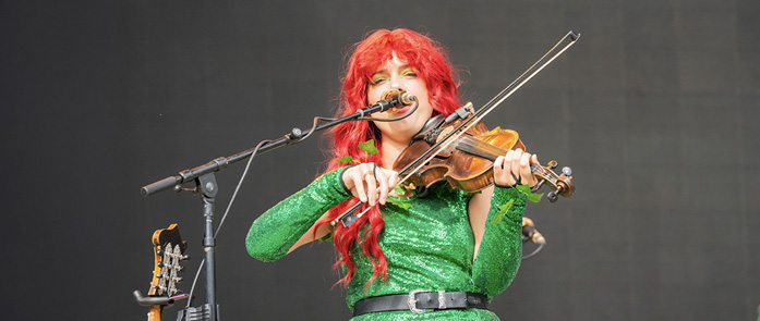 Mair Meyer as Poison Ivy with Molly Tuttle at Hulaween 2025 - photo © Corey Johnson-Erday Many thanks to Corey Johnson-Erday with Tune Ridge Media for sharing this gallery of images he took during Hulaween 2025 at Spirit of the Suwannee
