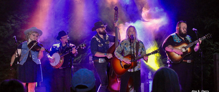 Jim Lauderdale and The Po' Ramblin' Boys at the Dancing Bear Lodge (8/1/24) - photo © Alisa B. Cherry To the extent that Jim Lauderdale shared stage time with The Po' Ramblin' Boys, the group that served as both his opening