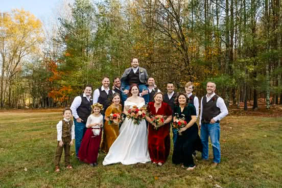Their wedding was held November 22 at the Solid Rock Baptist Church in Morganton, NC, which is their home church. Samantha tells us that since they are both musicians, singers, and songwriters, they performed a “first song” at their reception, in lieu of a first dance. That was followed by a jam session with their friends.