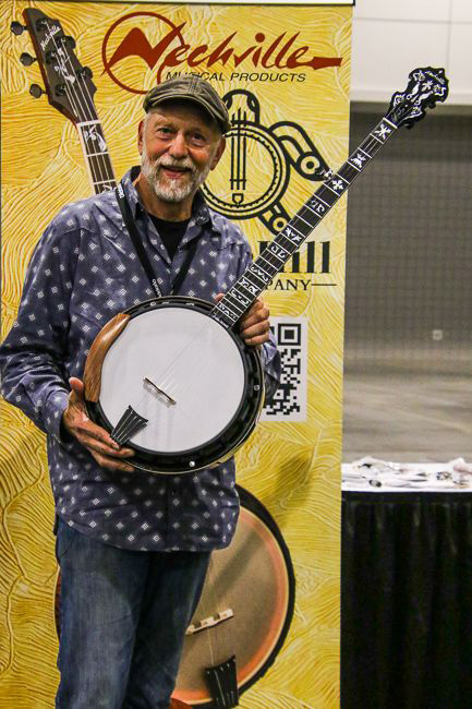 When we stopped by the exhibit hall this afternoon, Kyle Tuttle, of the Molly Tuttle Band, was there trying out the banjo.