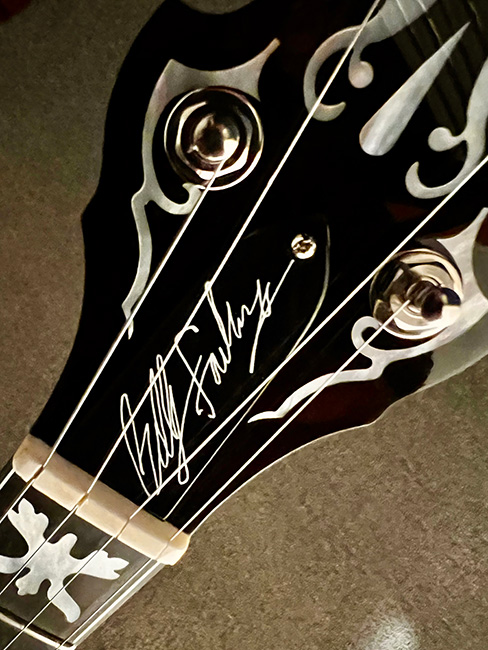 “Billy had played one of these a couple of times, and was interested in buying one. He really liked the maple version, and the comfort of the radiused fingerboard, plus the sound of the banjo. We visited with him a couple of times in my satellite shop in Oregon, and once he bought one and was playing it, we decided we ought to enter into a formal endorsement deal.”