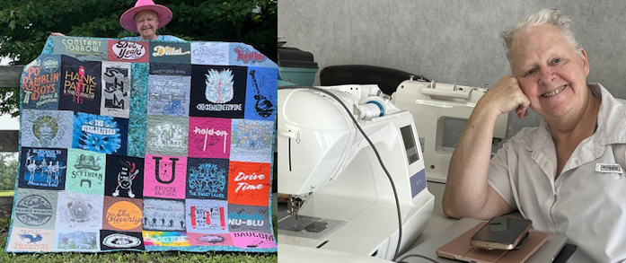 Kay McHenry loves to quilt. She also loves bluegrass music. And she has discovered a way to combine the two, constructing a quilt made entirely from bluegrass artists' t-shirts that took her approximately 80 hours to complete. The 67-year-old from Durham,