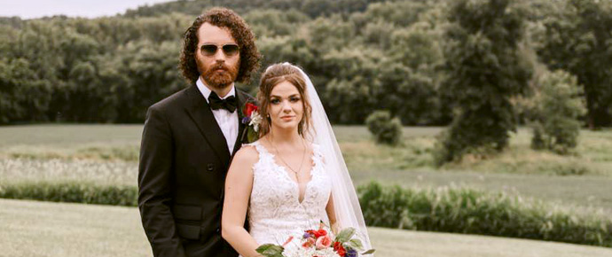 Mason Brewer, mandolinist with Gary Brewer & The Kentucky Ramblers, was married to Rosemary Hall this past weekend. Their wedding was held August 14 on the Brewer Family Farm in Kentucky. Mason and Rosemary met online in 2020. Rosemary is a multi-instrumentalist