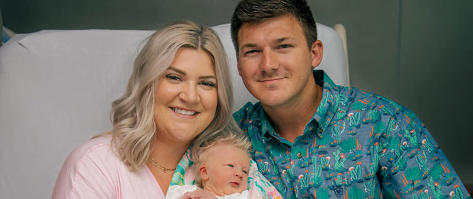 Another bluegrass baby! Congratulations go out to Cole Spencer, bass player and vocalist with The King James Boys, and his wife, Jada, on the birth of their first child. Audria Jade Spencer made her appearance on June 19 at 6:56 p.m. at