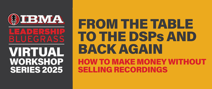 Leadership Bluegrass webinar on streaming as a source of income IBMA's Leadership Bluegrass has scheduled a free webinar for December 4, a panel discussion on using online music streaming as an income source. Titled From the Table to the DSPs and Back Again: How To Make Money Without Selling Recordings, it will be held from noon to 1:00 p.m. easternRead More