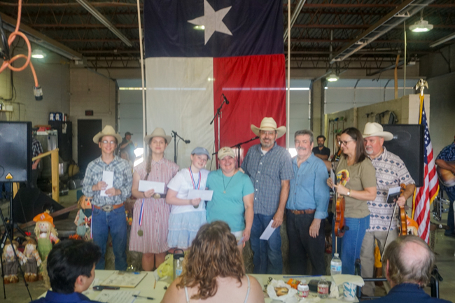 This year, Bowie hosted a remarkable lineup of contestants who were ready to showcase their skills and charm the audience with their fiddling finesse. Among the contestants was 14 year old Tristan Paskvan, a whiz who has amassed more buckles, titles, and awards many twice his age. Then there’s Wes Westmoreland, a legend whose foot-tapping tunes have made him a staple at every fiddle gathering. With his signature hat and playful banter, Wes, a four-time national champion, seven-time Texas Champion, four-time Texas Old Time Fiddler’s Association champion, and has finished in the top three at Weiser, knows how to keep both the competition and the crowd entertained!