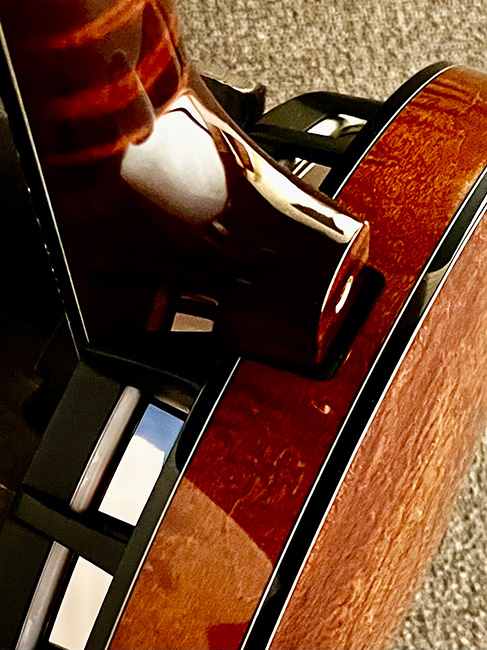 Nechville can install most any electronics package in the Billy Failing model, including their own Warp Drive dual pickup for banjo, which combines an EMG magnetic pickup with a piezo contact pickup in one system. That involves an uncharge from the banjo’s $6,673 retail price. One is available now from the Nechville web site for $6,200.