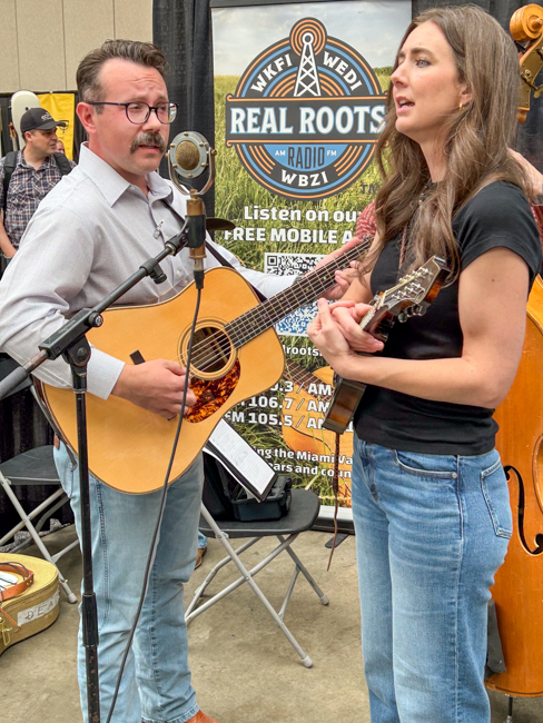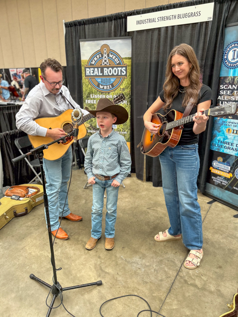 The final reunion moment came when Paul and Kelsi Harrigill, late of Flatt Lonesome, showed up in the Exhibit Hall to play a radio show. The last time they were at IBMA, about six years ago, they carried their four-week-old baby Carter in a tiny basket. This time, Carter joined his parents for a song, then put on a little show of his own. First, he played an original song, then a cover, complete with a G-run. Then he took a deep bow and announced he would sign autographs.