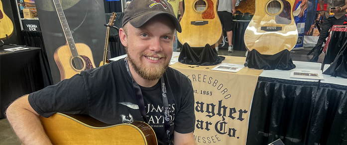 Zeb Snyder at the Gallagher booth at World of Bluegrass 2025 - photo © Sandy Hatley Both Roger Black and Sandy Hatley grabbed some photos in the Exhibit Hall of the Chattanooga Convention Center on Thursday at World of Bluegrass '25.