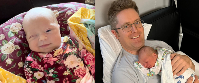 Another bluegrass baby! Congratulations go out to Cole Spencer, bass player and vocalist with The King James Boys, and his wife, Jada, on the birth of their first child. Audria Jade Spencer made her appearance on June 19 at 6:56 p.m. at